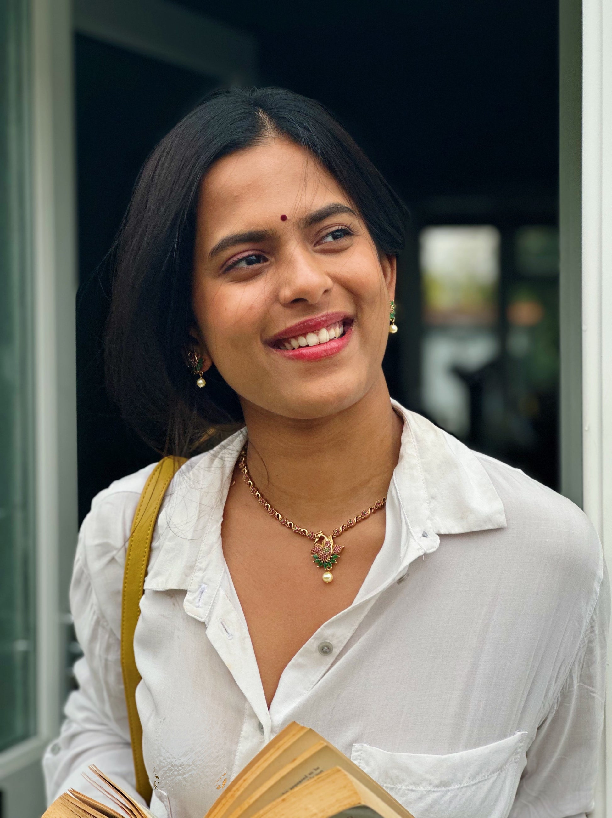 Adorned with ruby and emerald-toned stones, this set adds a hint of regal charm without losing its everyday elegance. Whether paired with festive wear or styled with a simple outfit, Sigi brings that touch of understated luxury to every moment.